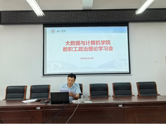 6 月 18 日,vwin德赢ac米兰官方网在逸夫楼 407 召开政治理论学习会,本次会议由副院长(主持行政工作)梁志勋主持,全体教职工参加。